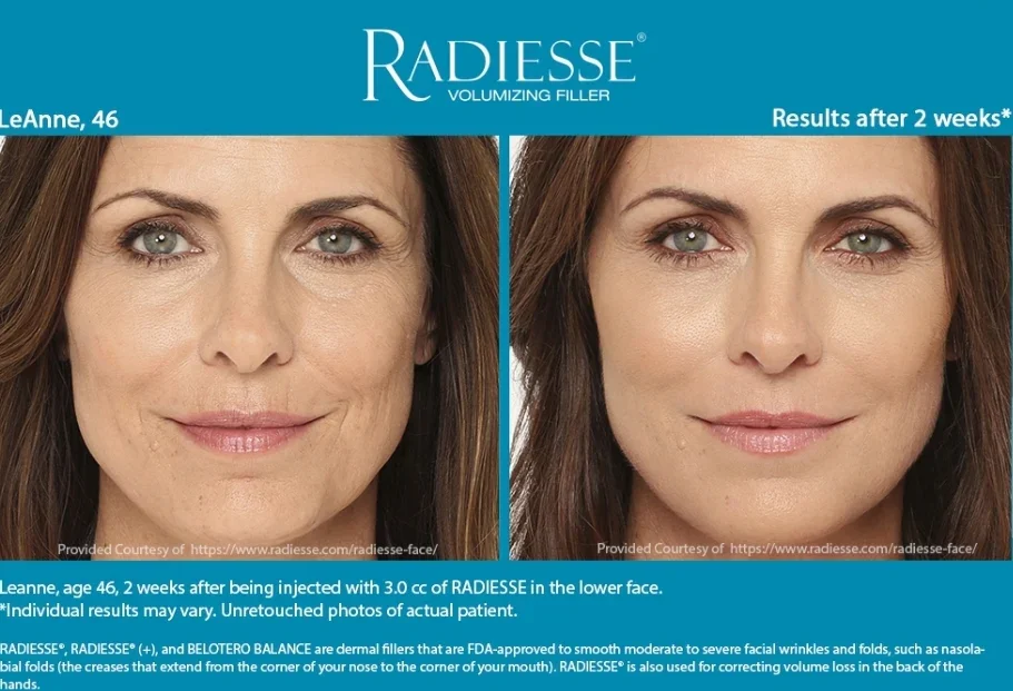 Radiesse® is a calcium hydroxylapatite (CaHA) based filler that has been used for years to restore facial volume. When diluted with a sterile solution, it becomes Hyperdilute Radiesse, which works as a bio-stimulator rather than a volumizing filler. This stimulates your skin to produce more collagen and elastin, gradually improving texture, tone, and tightness.